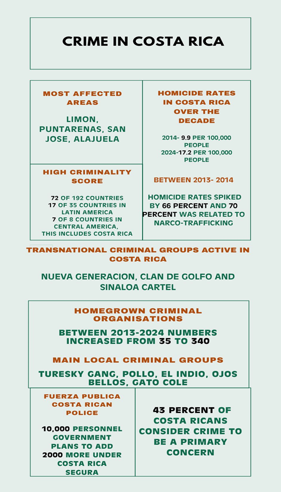 [xiii] Cronkite News (2025). As Costa Rica welcomes record-breaking number of tourists, the country is battling rising crime. Accessed 5th July 2025. https://cronkitenews.azpbs.org/2024/10/18/costa-rica-face-record-breaking-levels-crime-tourists/#:~:text=Meanwhile%2C%20the%20fight%20against%20crime,year%20in%20the%20country's%20history..