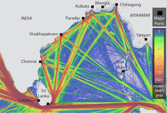 मानचित्र 2: बंगाल की खाड़ी के समुद्री संचार मार्ग[i]